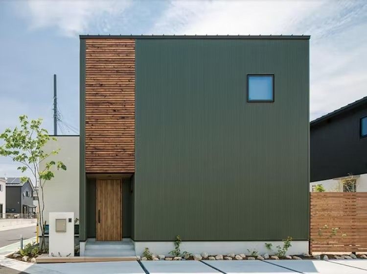 - 金属サイディング(ガルバリウム鋼板など)を組み合わせて質感のコントラストを出す