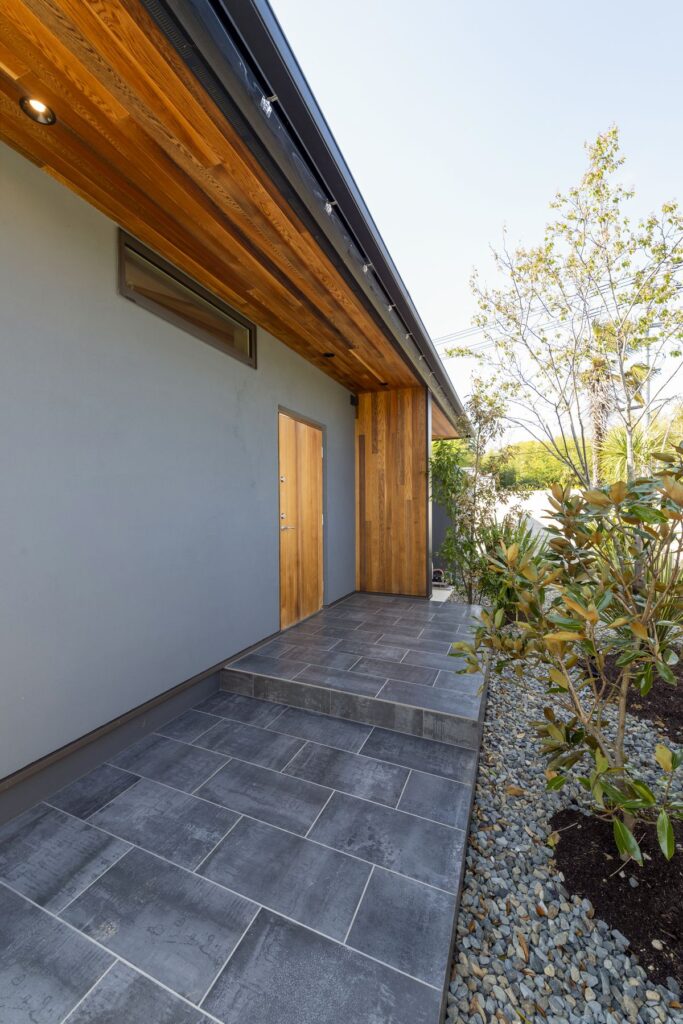 軒天であれば、直接的な雨風や強い日差しを避けやすいため、メンテナンスの頻度を抑えつつ、見上げたときに木の風合いを楽しむことができます。玄関周りなど、人の目に近い場所にポイントで使うだけでも、建物全体の質感を底上げしてくれる効果が期待できます。